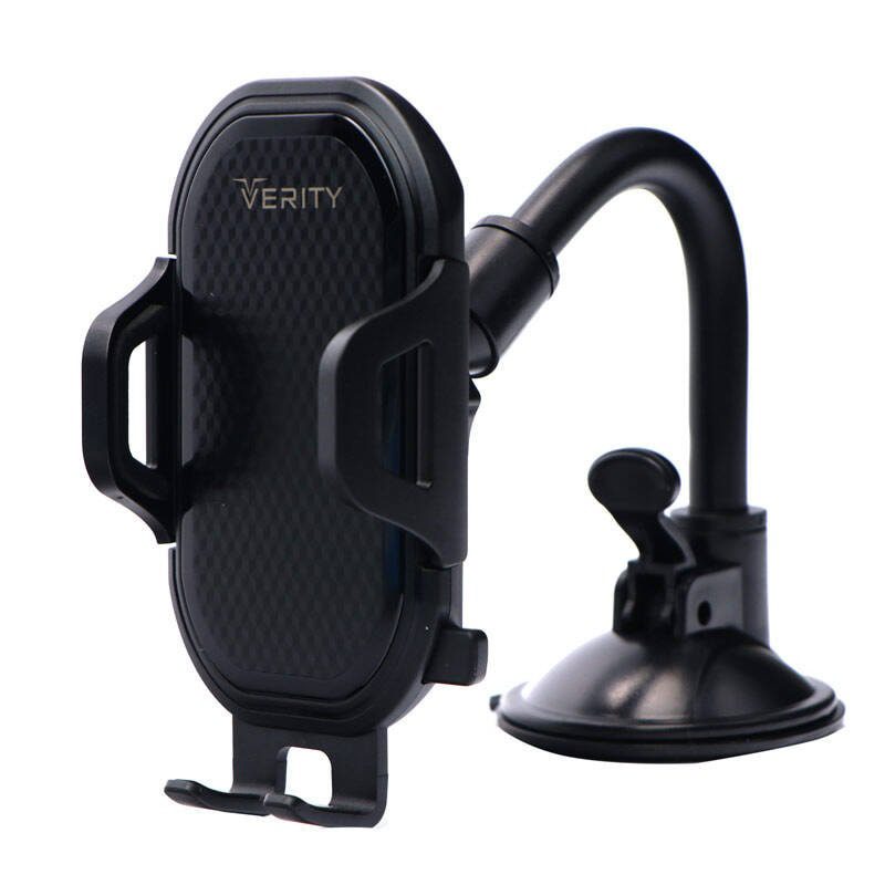 هولدر موبایل خودرو مدل V-CH1113 محصول برند VERITY (وریتی) است. این محصول دارای دو گیره محکم و فنر دار، دارای ساکشن مکنده نانو سیلیکونی قوی، دارای قابلیت چرخش 360 درجه، دارای یک چسبونک بسیار قوی و همچنین سازگار با گوشی های 4 الی 6 اینچی می باشد.