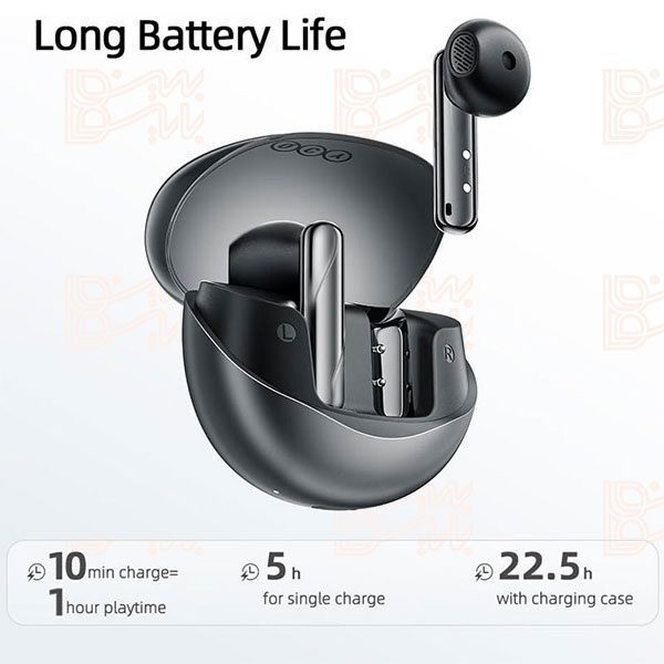 باتری قدرتمند این هندزفری بلوتوثی به شما امکان میدهد تا ساعتها از موسیقی یا تماسهای خود لذت ببرید. با هر بار شارژ کامل، میتوانید تا ۶ ساعت به صورت مداوم از این ایرپاد استفاده کنید. همچنین، جعبهی شارژر همراه این ایربادز، چندین بار قابلیت شارژ مجدد را فراهم میکند و در مجموع تا ۳۰ ساعت استفاده بدون نیاز به شارژ را ممکن میسازد.